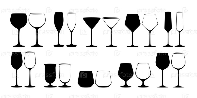 Набор силуэтов стеклянных бокалов
