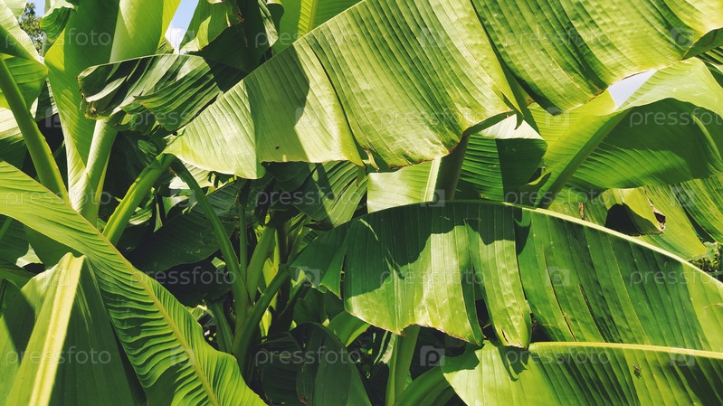 Зеленый банановый лист в природе, банановый лист