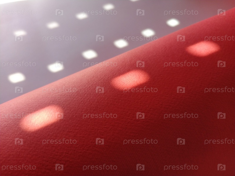 Красный фон в горошек. Лучи солнца пробиваются сквозь отверстия в жалюзи и рисуют легкие размытые круги на цветной поверхности
