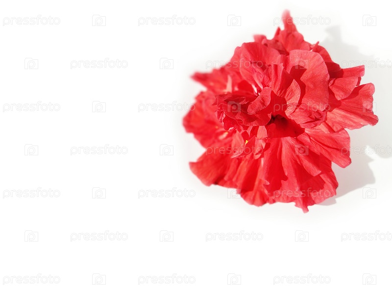 Красный махровый китайский цветок гибискуса на белом фоне. Китайская роза. Красный цветок для карнавала
