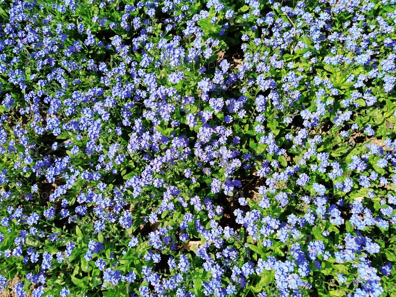 Незабудки. Myosotis синие цветущие растения семейства Boraginaceae. Незабудки или скорпионные травы. Myosotis alpestris мелкие цветы для украшения газонов и клумб. Ландшафтный дизайн сада