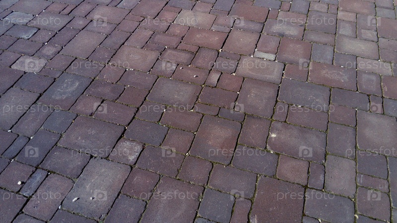 Мощеная улица старого города, выложенная квадратной и прямоугольной каменной плиткой в хаотичном порядке. Мягкие бежевые, коричневые и серые цвета и тона. Текстура камня. Геометрический узор