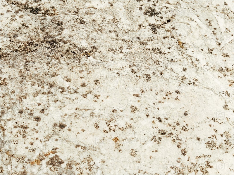 Фактурная поверхность бетонной стены, мрамора или светлого камня с темными пятнами. Абстрактный фон. Креативный фон светло-серый с красными и коричневыми кусочками мха, грязи и пыли