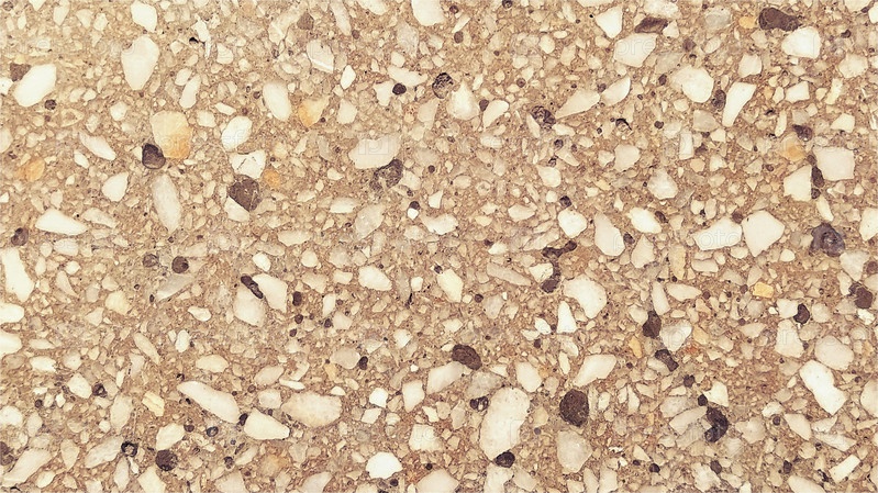 Бетонная поверхность с разноцветными пятнами мелких камней. Бежевый или оранжевый тон. Стена здания или бетонная плита. Крупный план. Пятнистая цементная поверхность. Внутренняя или внешняя отделка
