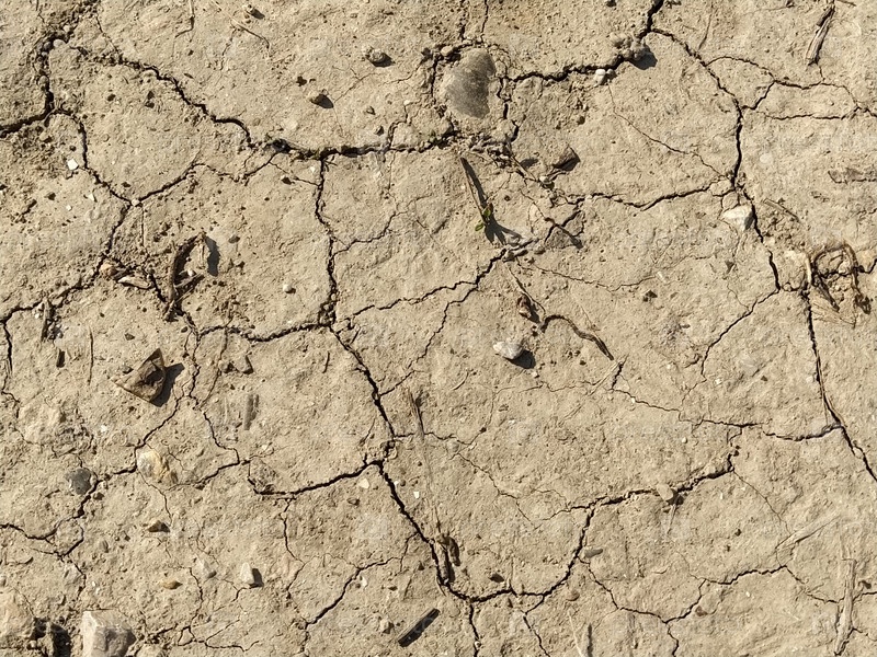 Сухая глина треснула земля. Почва светло-бежевая. Засуха и изменение климата. Сухая грязь. Фоновая текстура. Баннер. Частицы травы, камней и дорожной пыли