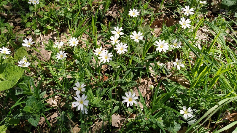 Лесная морская звезда. Нежные белые цветы в лесу. Противодиабетическое средство, натуральный подсластитель. Красивые лекарственные растения. Мягкий фокус