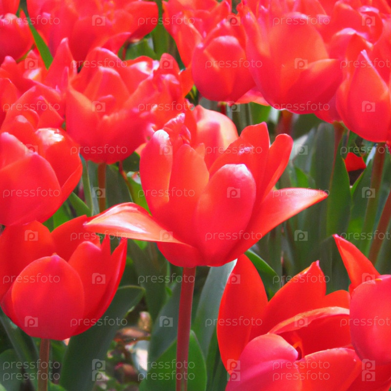 Тюльпан Тулипы луковичные травы семейства лилейных Лилияceae. тюльпаны, садовые цветы, сорта и разновидности. Цветы нежного ярко-красноватого цвета. Красивые бутоны. Ландшафтный дизайн. Гибриды сортов