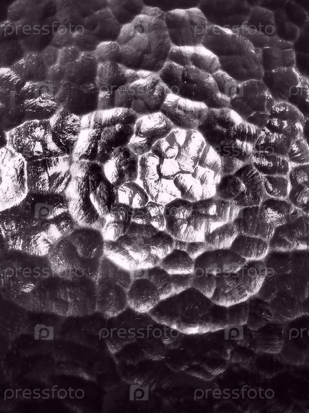 Рифленое стекло, задний источник света. Игра бликов и отражений на прозрачной неровной поверхности. Темные и светлые абстрактные асимметричные многоосвещенные плоскости. Абстрактный ухабистый сиреневый фон