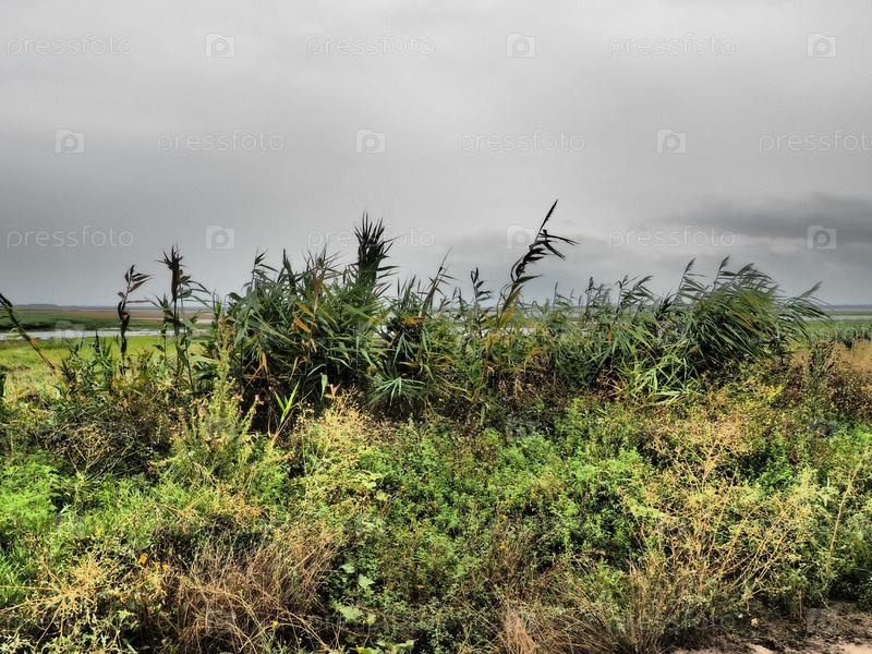 Обыкновенный тростник или южный тростник, Phragmites australis, высокая многолетняя трава рода Тростники. Флора эстуария. Влаголюбивое растение. Почвы с близким стоянием грунтовых вод. Бурная погода