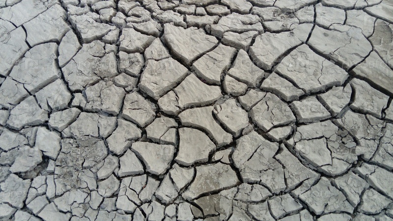 Растрескавшаяся глинистая почва из-за засухи и растраты речной воды