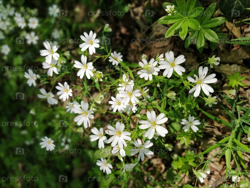 Лесная морская звезда. Нежные белые цветы в лесу. Противодиабетическое средство, натуральный подсластитель. Красивые лекарственные растения. Мягкий фокус