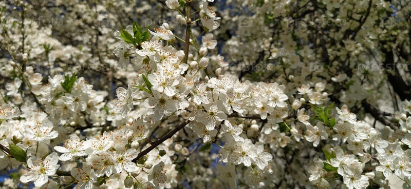 Красивые белые весенние цветы. Пышно цветущие вишни, абрикосы, сливы. Весенний фестиваль. японская традиция. Открытка, макет или цветочный фон. Нежные лепестки с пестиками и тычинками