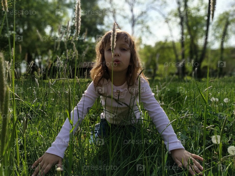 Молодая девушка на лугу. Мальчик сидит в зеленой траве. Концепция экологии и гармонии с природой. Милая девушка трогает растения руками. Поле с злаками. Спокойная жизнь и отдых