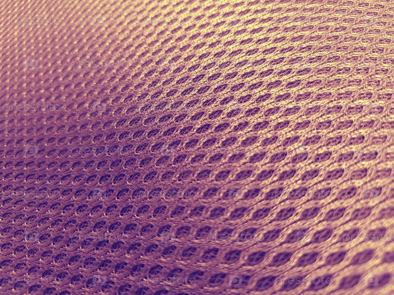 Розовый синтетический пористый материал с градиентом фиолетового и желтого цветов. Крупный план наклонен. Ткань полиэстер. Ткань для пошива одежды, обивки и мебели