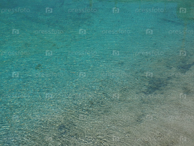 Голубая и бирюзовая вода. Чистая морская вода с волнами и солнечными бликами. дно видно