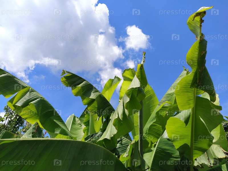 Зеленый банановый лист в природе, банановый лист