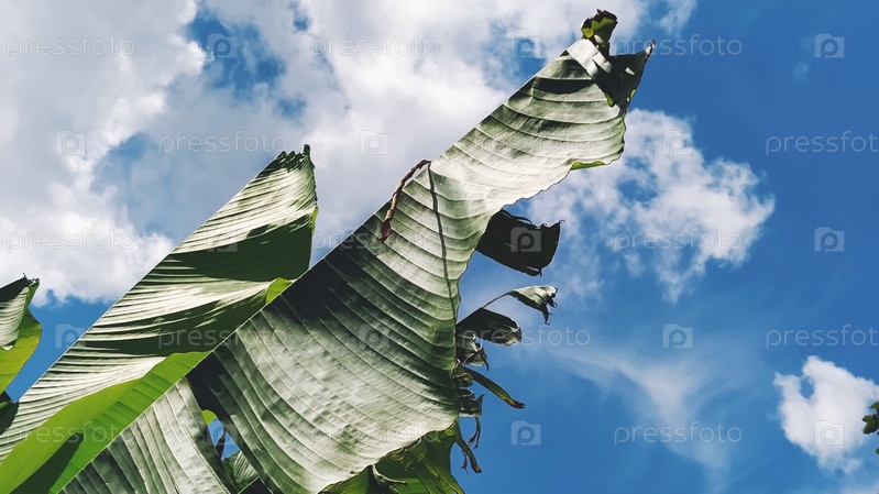 Зеленый банановый лист в природе, банановый лист