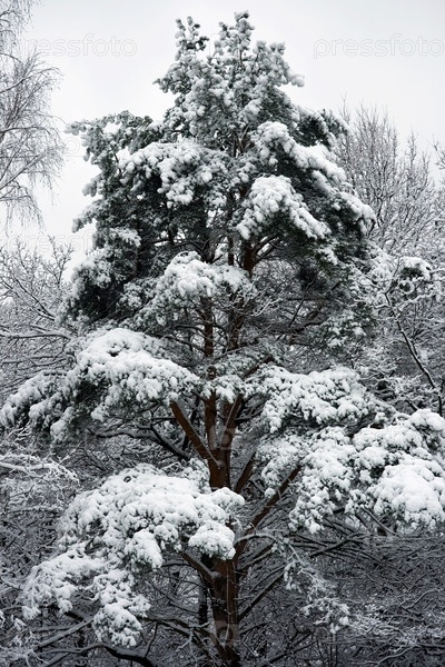 Зимняя елка под белым снегом, Россия