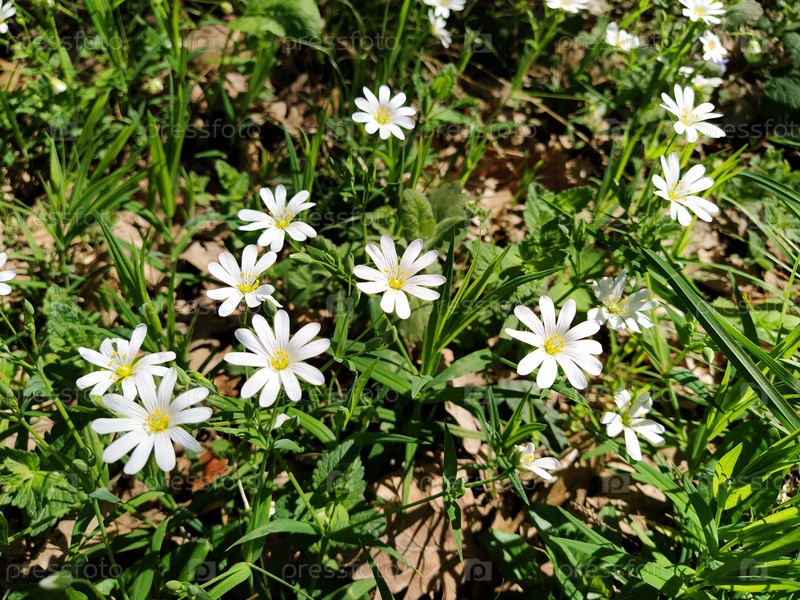 Лесная морская звезда. Нежные белые цветы в лесу. Противодиабетическое средство, натуральный подсластитель. Красивые лекарственные растения. Крупным планом