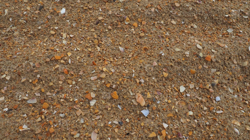 Песок на фоне ракушек. Влажный крупнозернистый кварцевый песок. Разбитые ракушки. Пляж после сильного дождя. Кремнезем. Измельченный кварцевый песок, натуральный коричневый материал после шторма. Вмятины от капель в песок. Анапа