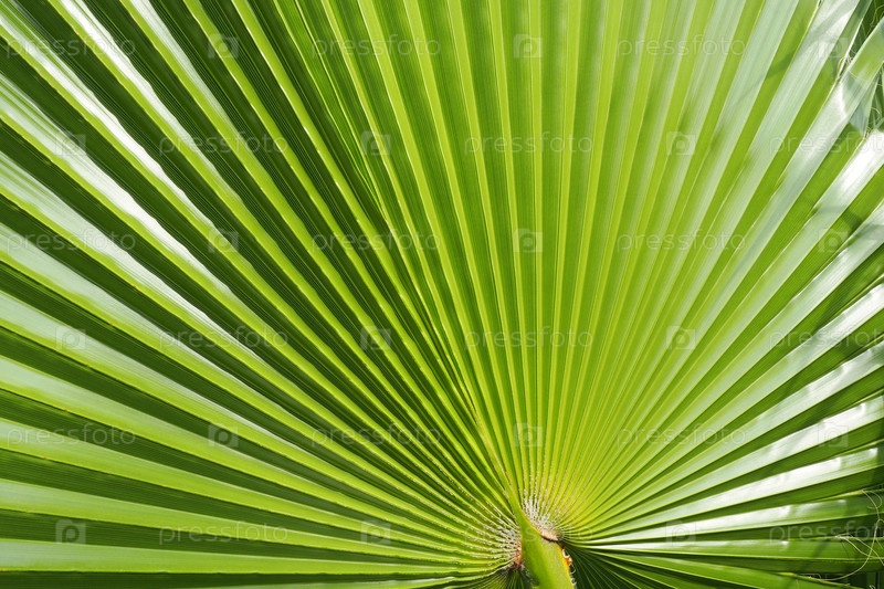 Текстура пальмовых листьев с тенью и светом. Пальмовые листья ярко-зеленого и желтого цветов. Тропический красивый фон. Летний пляжный туризм. Плиссированные листья
