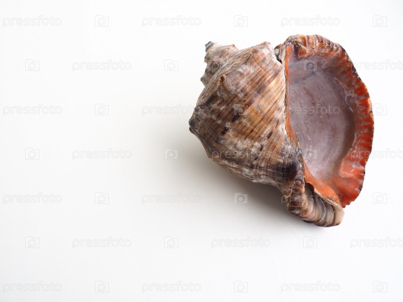 Рапана, род хищных морских переднежабревых брюхоногих моллюсков из семейства Muricidae.Рак широкоовальный, серо-коричневого цвета со спиральными ребрами и осевыми утолщениями.Пустой раковина на белом фоне