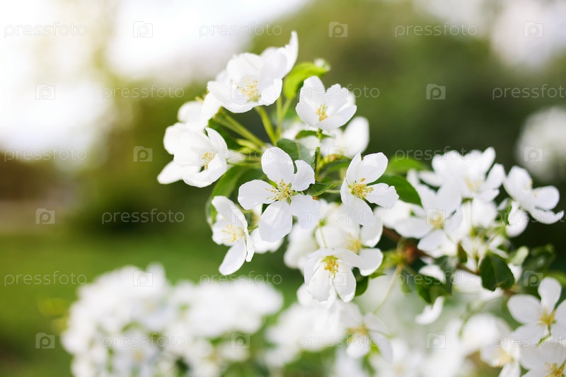 Ветка цветущей яблони в солнечный весенний день