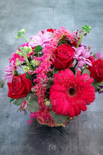 Прекрасный букет цветов на сером фоне