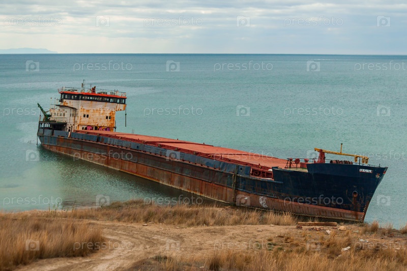 Суров — большой старый корабль, потерпевший крушение у российских берегов и брошенный на берег. На поверхности воды видны следы нефтепродуктов