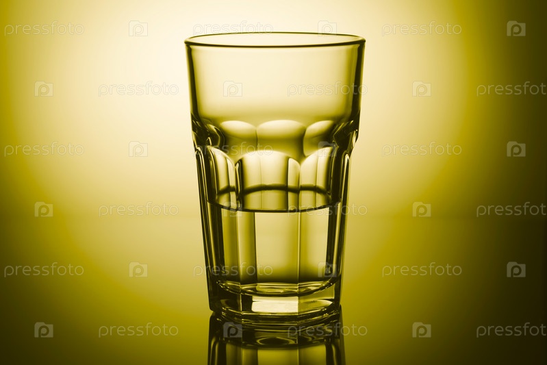 Наполовину наполненный хайбол в желтом свете с зеркальным отражением. Крупный план