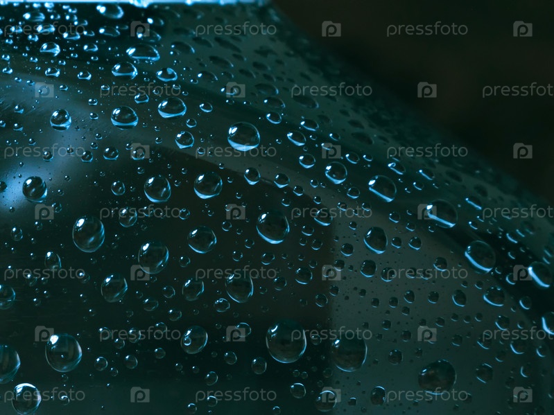 Капли воды на стеклянную бутылку. Крупный план капель на темной поверхности. Выборочный фокус