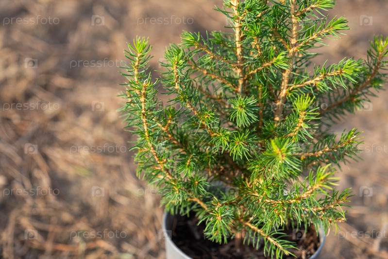 Хвойные растения в горшках с закрытым корнем для посадки на своем приусадебном участке из питомника. Озеленение садового участка весной