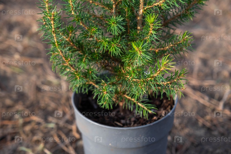 Хвойные растения в горшках с закрытым корнем для посадки на своем приусадебном участке из питомника. Озеленение садового участка весной