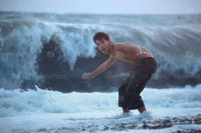 Юноша на фоне морской волны