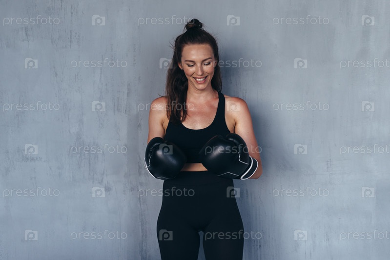 Портрет молодой спортсменки в боксерских перчатках