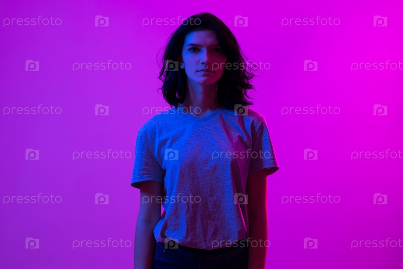 Творческий красочный портрет молодой женщины. Ночной клуб, праздник
