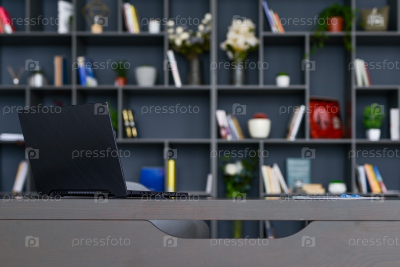 Стол с ноутбуком в интерьере домашнего офиса