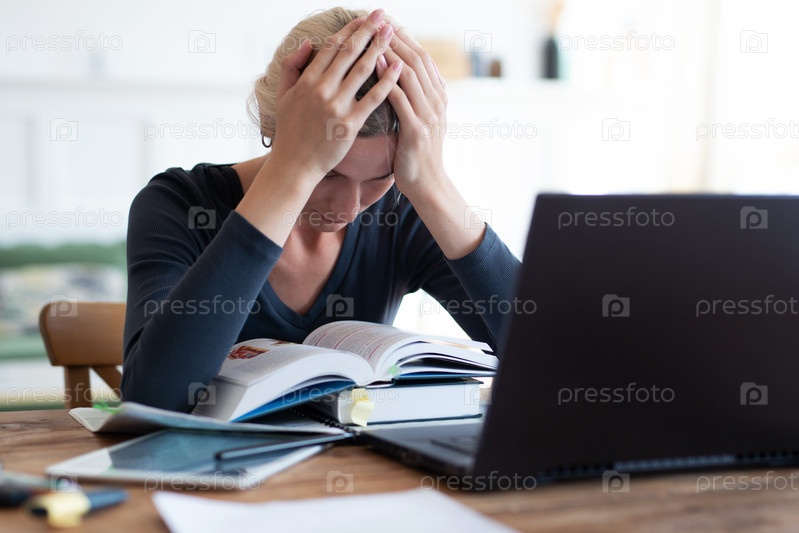Уставший студент, которому нужно много читать дома