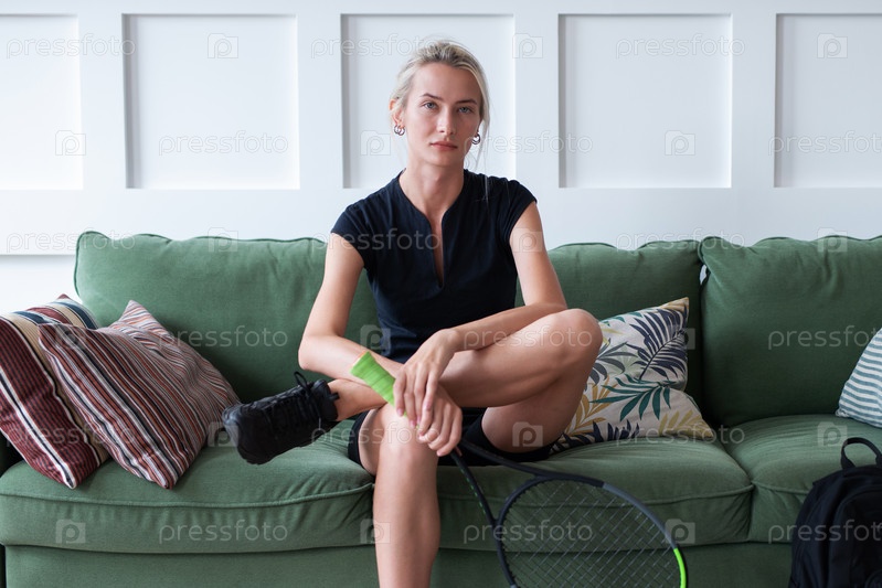 Портрет молодой теннисистки дома