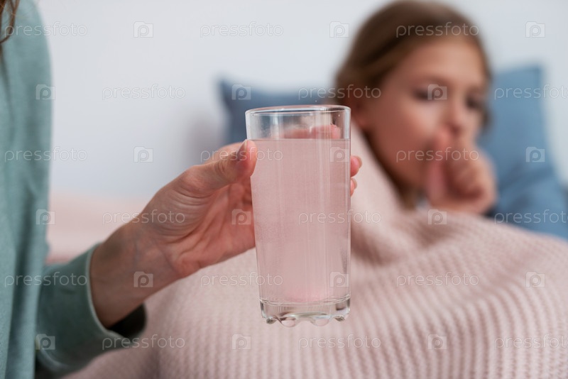 Шипучая таблетка растворяется в стакане воды – это лекарство для девочки при насморке
