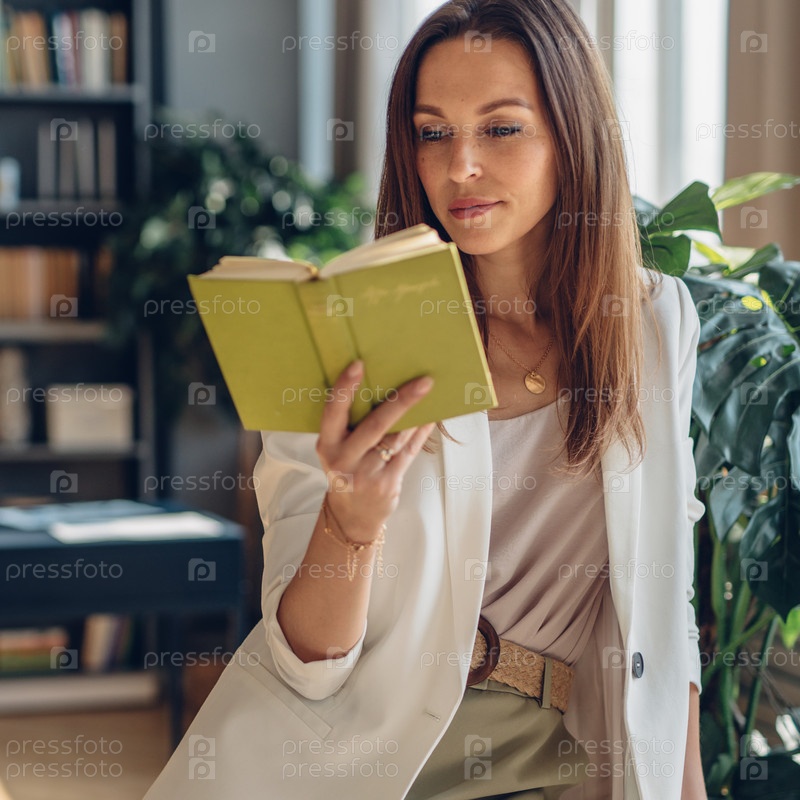 Портрет молодой женщины, читающей книгу дома