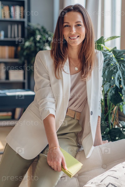 Портрет деловой женщины дома с книгой
