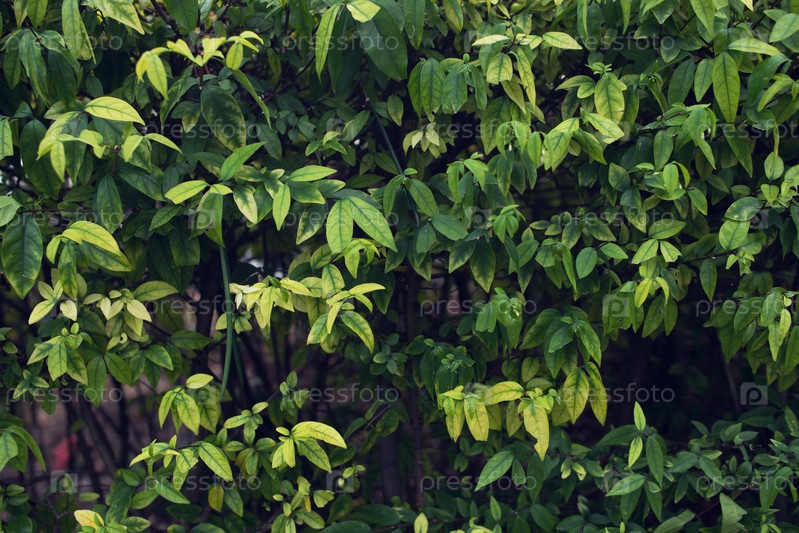 Куст с мелкими листьями и ярко-зеленой молодой листвой в качестве фона