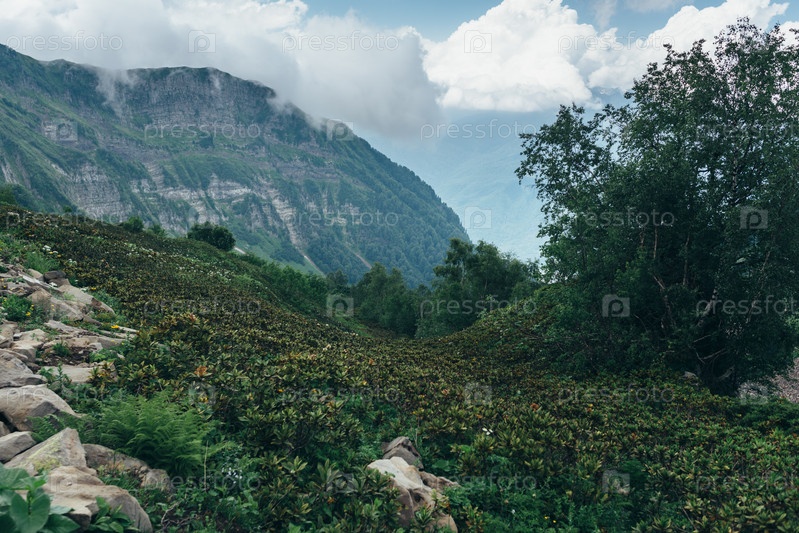 Природа, горный пейзаж, живописный вид с облачным небом