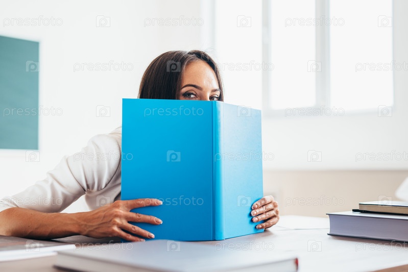 Прекрасная студентка прячется за книгой
