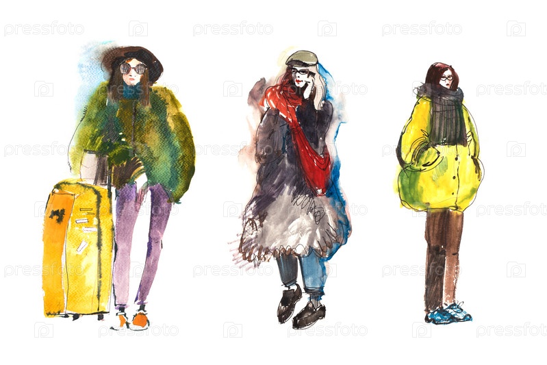 Модные молодые люди в верхней одежде акварельной иллюстрации