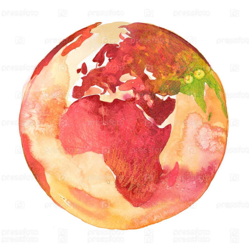 Африка на земном шаре. Планета Земля. Акварель