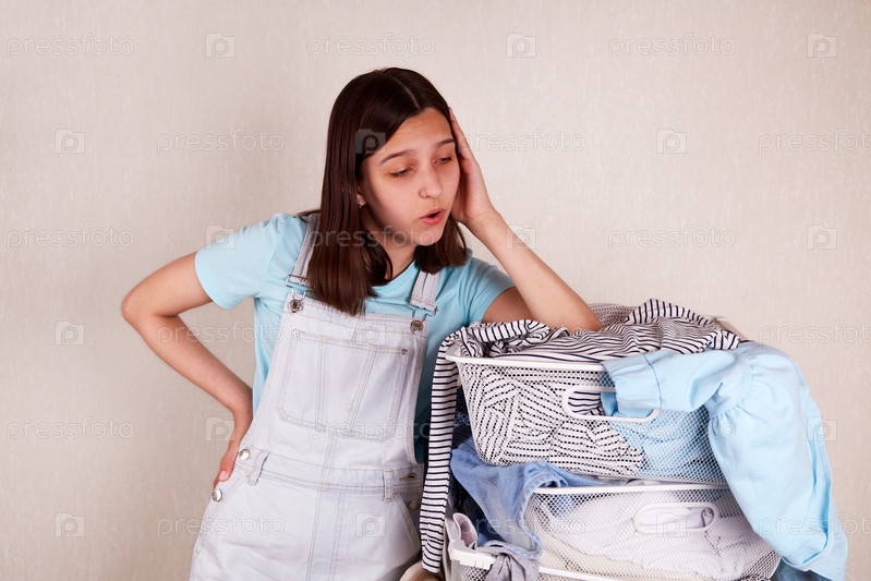 Женские руки аккуратно складывают одежду в металлическую корзину