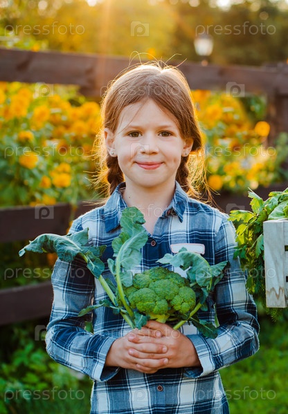 Дети маленькая девочка держит маму корзину свежих органических овощей с домашним садом
