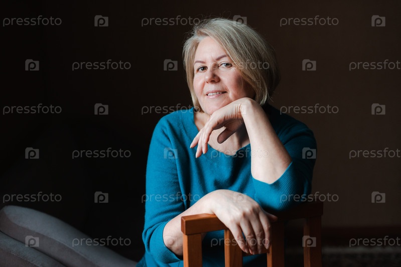 Портрет пожилой красивой пенсионерки на темном фоне